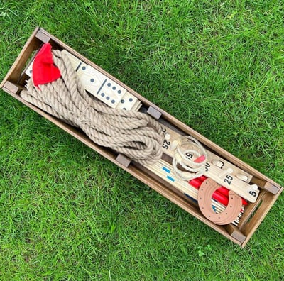 Šį žaidimų rinkinį sudaro keturi žaidimai: Kopėčių golfas, Jenga, King Kubb ir Cornhole. Šis, itin universalus ir įvairialypis žaidimų komplektas, sukurtas žaisti tiek jaunesniems, tiek vyresniems, paįvairins kiekvieną šventę.
